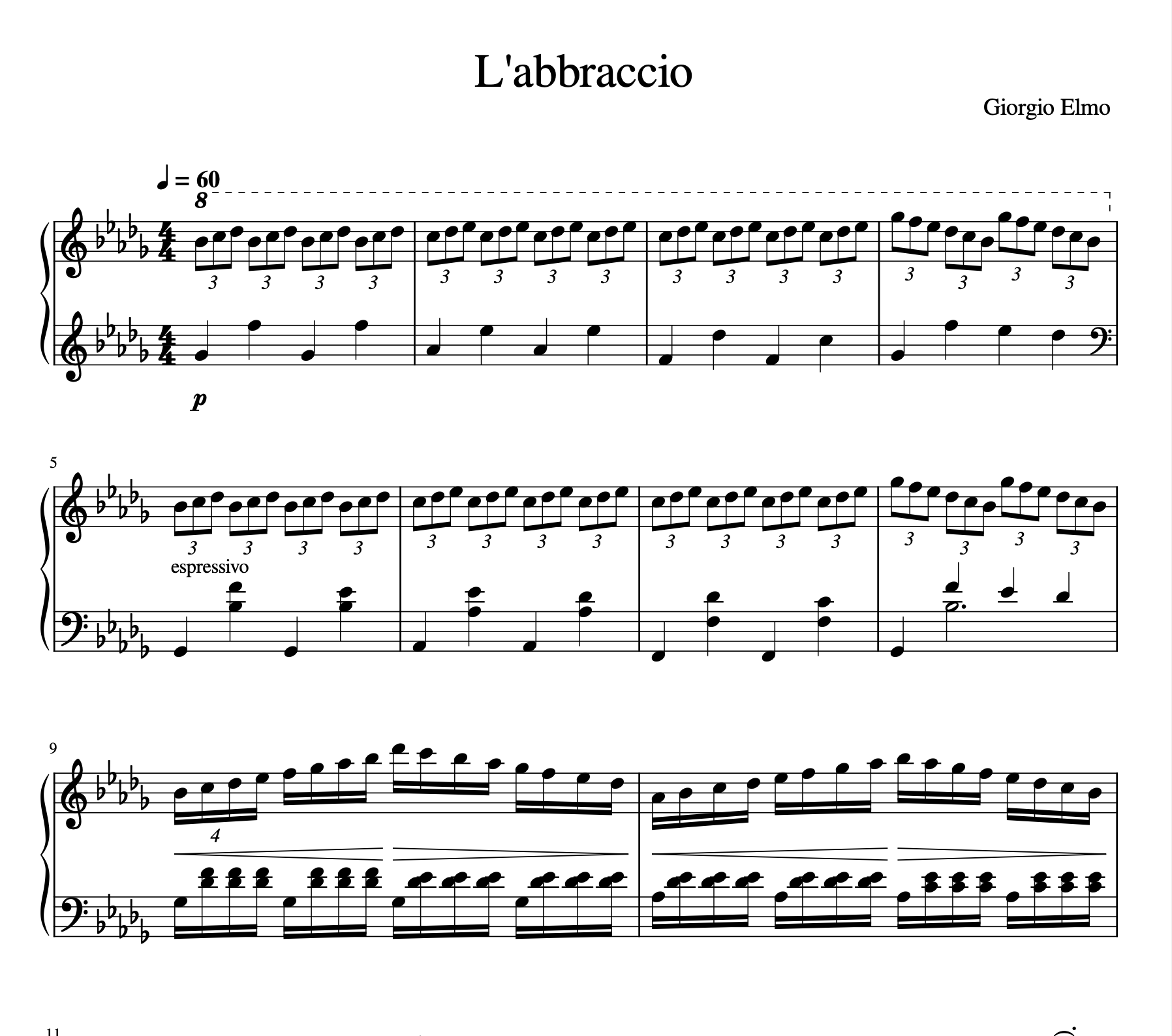 L’Abbraccio – PDF. Partitura piano. Music by Giorgio Elmo.
