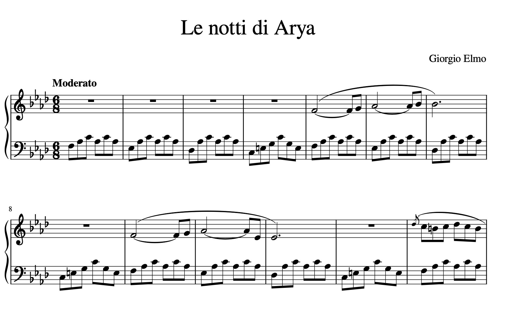 Le notti di Arya – PDF. Partitura piano. Music by Giorgio Elmo.